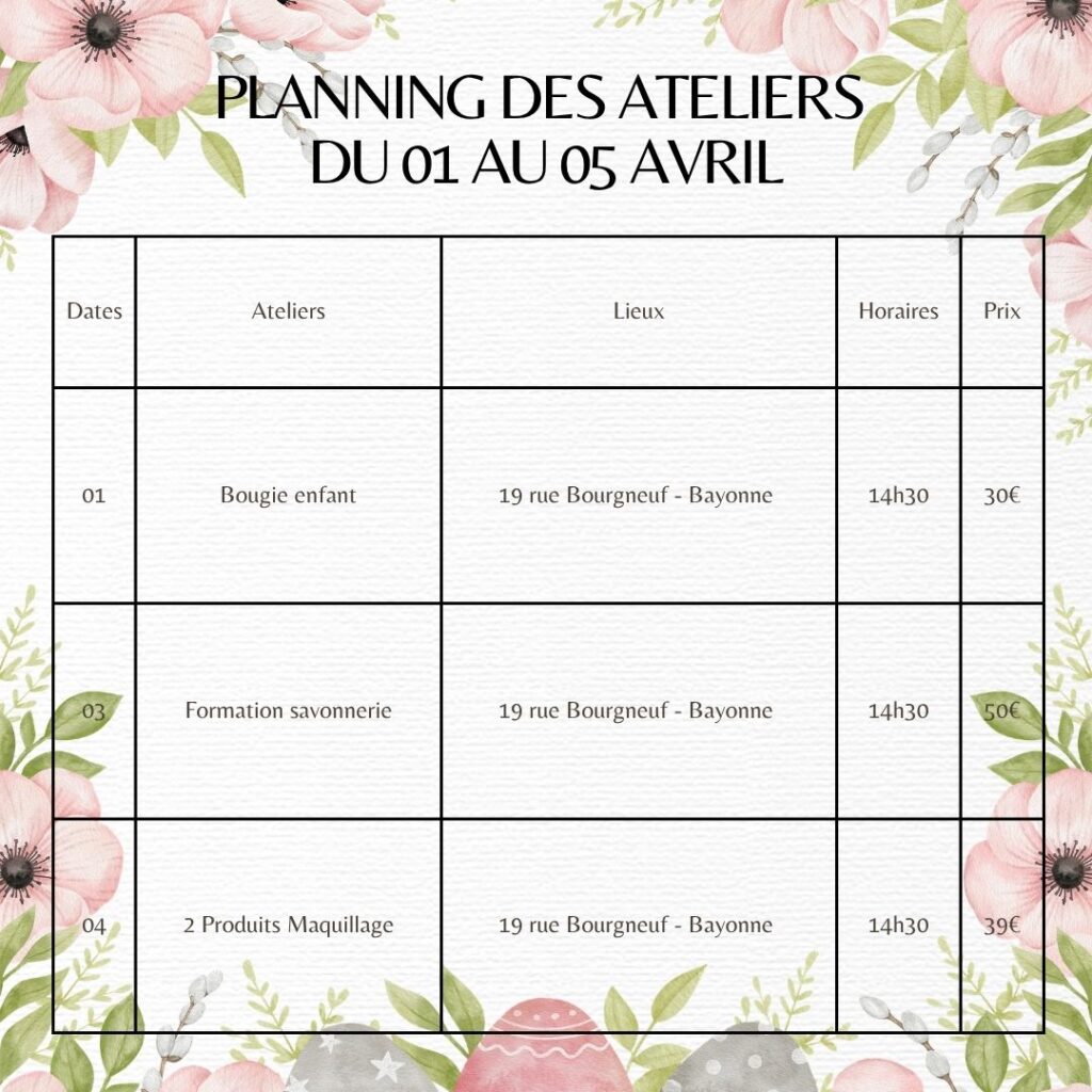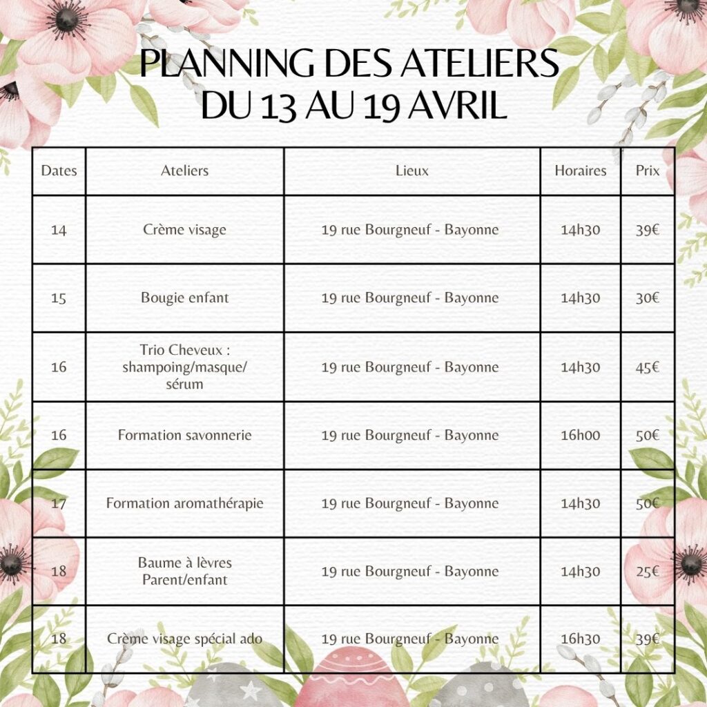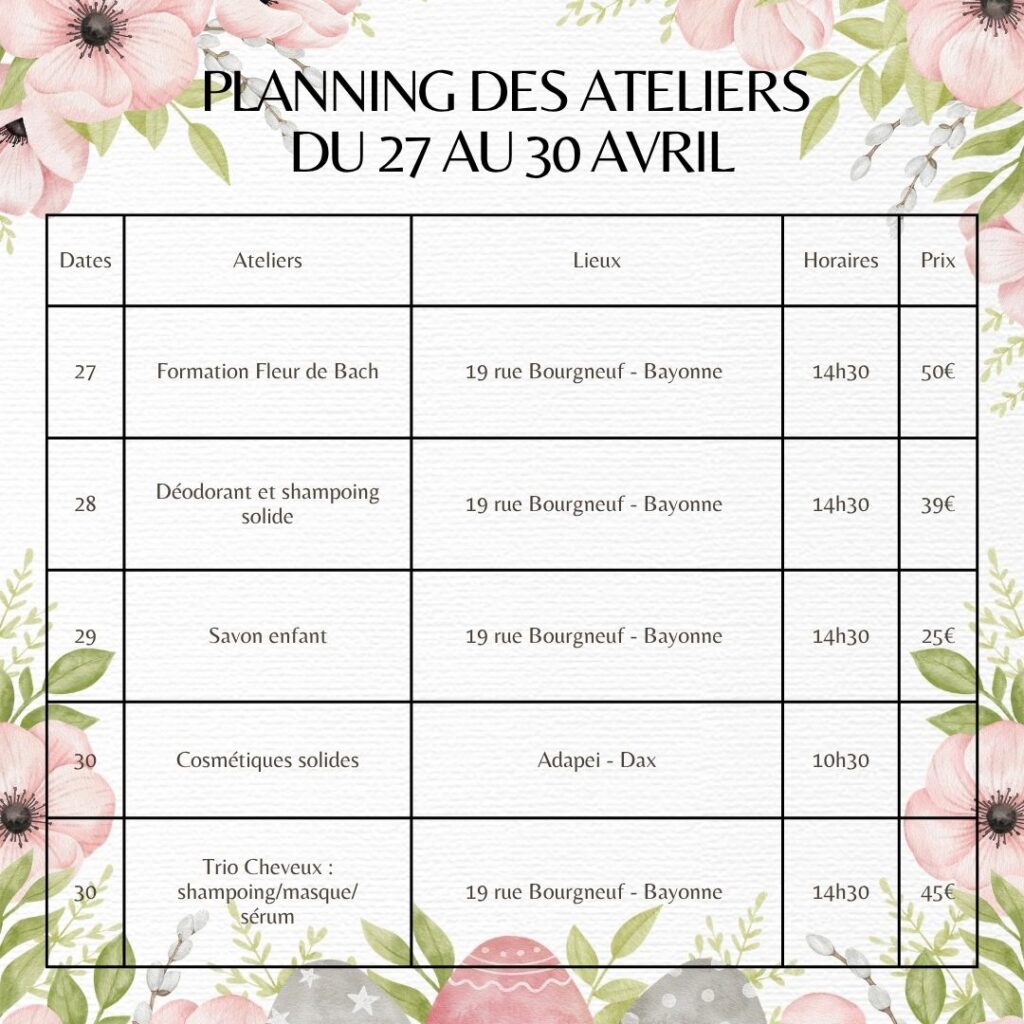 Au menu : des moments de partage, de création et de découverte autour des cosmétiques naturels 🌱