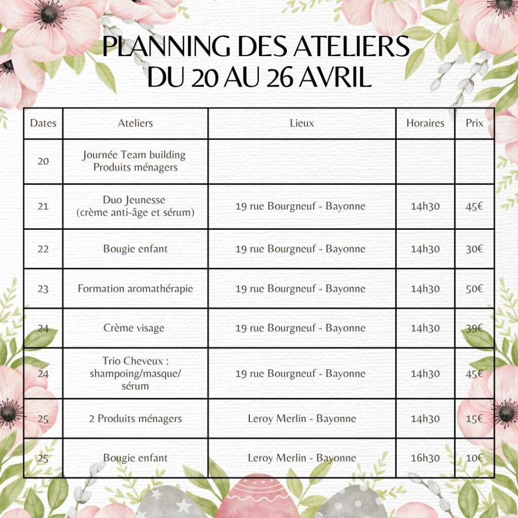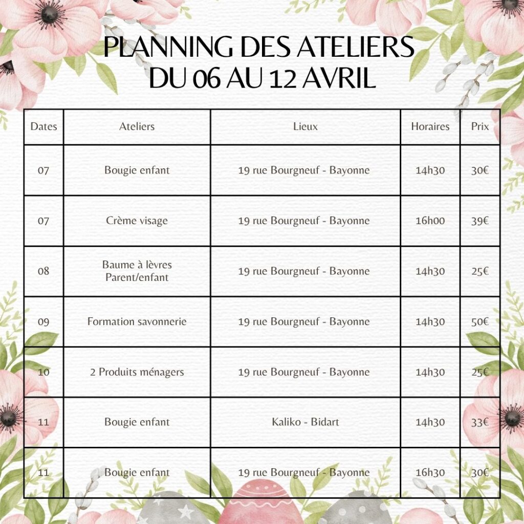 🌿✨ Le planning des ateliers d’avril est là ! ✨🌿
