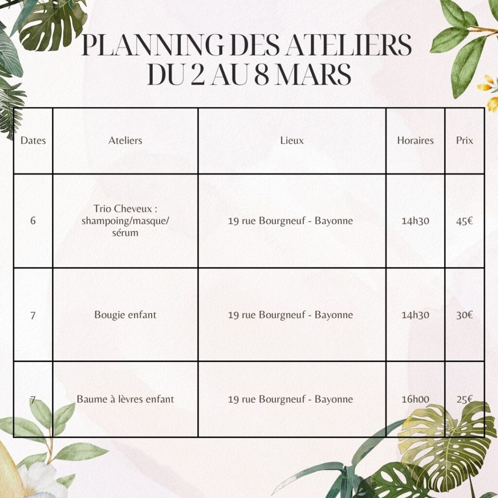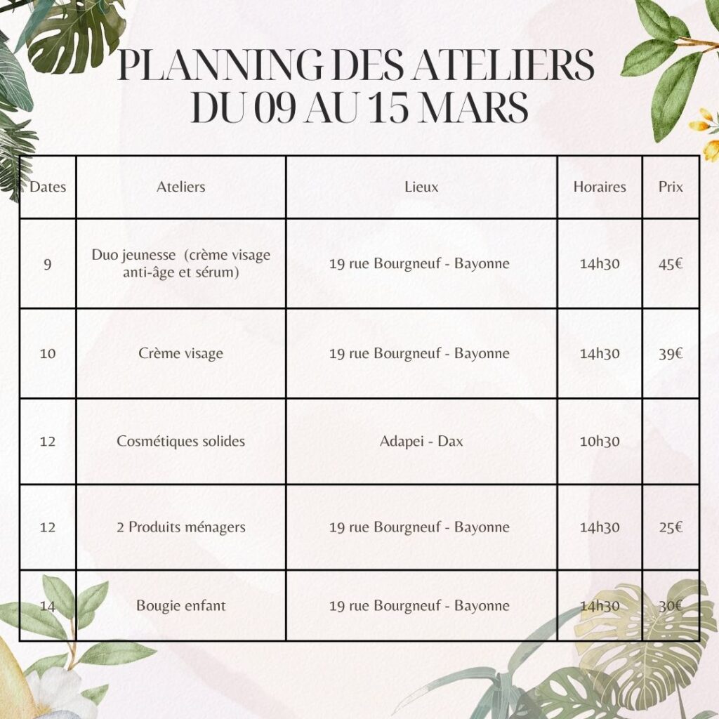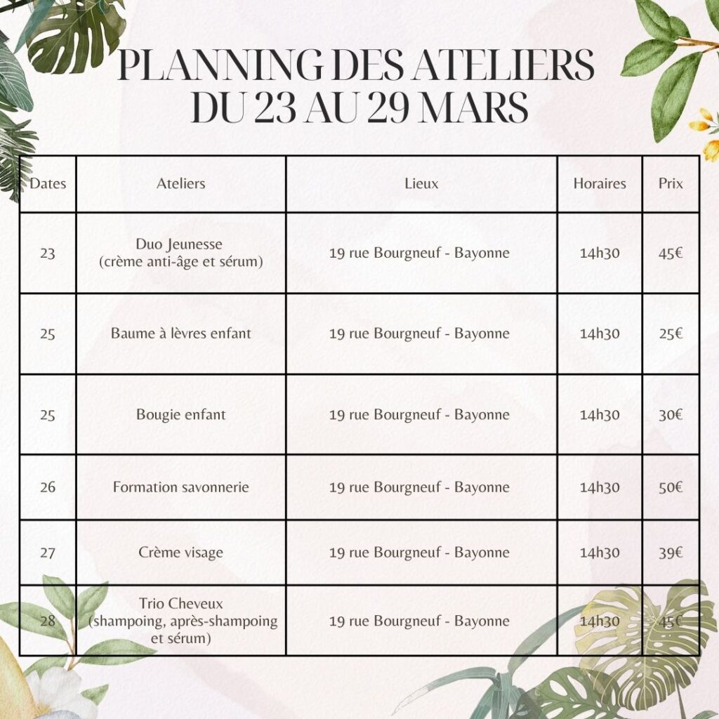 Inscriptions directement en boutique ou contactez moi sur les réseaux sociaux. Alors à vous agendas.